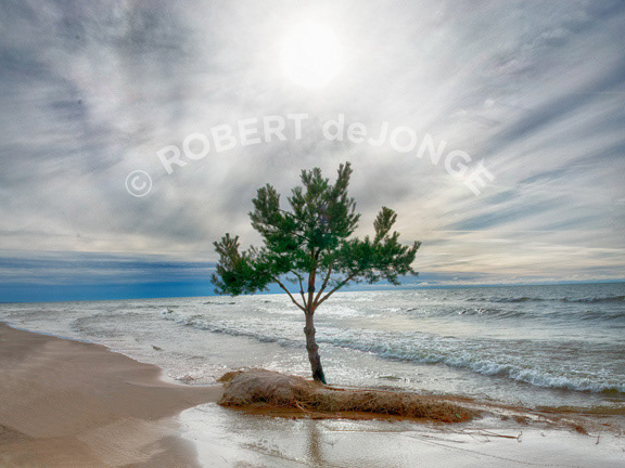 A small Jack Pine started its life in the back-dunes on Lake Michigan, but as the shores eroded it found itself in a fight with all the elements that the lakeshore could throw at it.